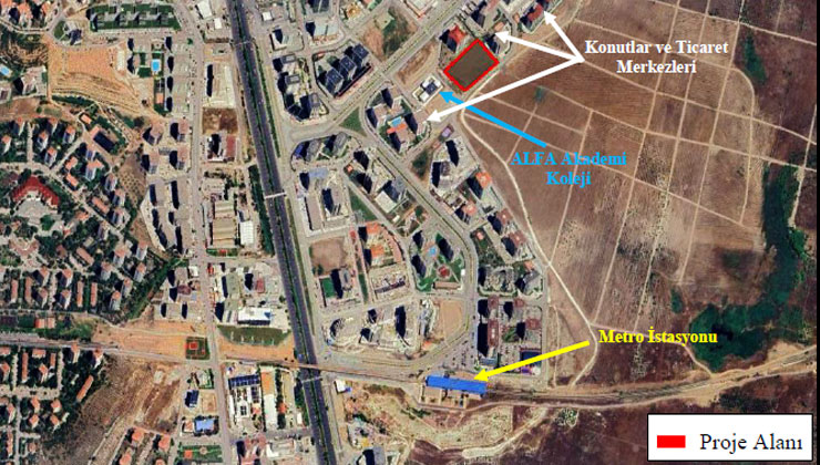 Proje alanının 30 m güneyinde tarım arazileri bulunuyor. Proje alanının 740 metre güneyinde ‘İstanbul Yolu’ Metro istasyonu, arsa sınırının 450 metre doğusunda Fatih Sultan Mehmet Bulvarı, 30 metre doğusunda ALFA Akademi Koleji ve hemen komşu sınırında ‘Plus Life Ankara’ ve ‘Oasis Korupark Residence’ yerleşim merkezleri yer alıyor. Proje alanının çevresinde Susuz (Yenibatı) Mahallesine ait konutlar ve iş merkezleri bulunuyor.