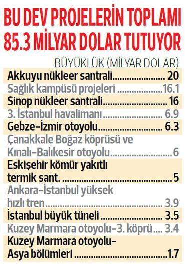 ‘Neden Türkiye’ başlıklı bölümde, altyapı ve yatırımlarla ilgili bilgilere yer verildi. Türkiye’nin 2030’a kadar altyapıya yılda 70 milyar dolar yatırım yapacağı belirtildi ve büyük projelere yer verildi. Planlanmış yatırımlar başlığı altında 11 proje sayıldı. En üst sırada Akkuyu Nükleer Santrali geldi. Akkuyu nükleer santralinin büyüklüğü 20 milyar dolar olarak, ikinci sıradaki sağlık kampüsü projeleri 16.1 milyar dolar, Sinop nükleer santrali 16 milyar dolar olarak yer aldı.