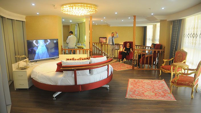 Talas, otelde yer alan 840 odadan 19’unun kral dairesi olacağını belirterek, her bir kral dairesinin 250 metrekare olduğunu, aynı anda 19 ayrı kralı, devlet başkanını ağırlayabileceklerini söyledi.