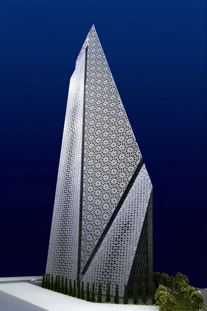 Bir hortumdan ilham alan bir diğer yapı olan 43 katlı Al Bidda Tower, aynalı dış panellerden oluşan bükümlü bir cephe ile süslenmiştir. Çapraz dış paneller, Katar’ın sürekli gelişen kültürünü ve ekonomisini temsil etmeyi amaçlayan tasarımla, binanın tepesine ulaştıkça yavaş yavaş genişliyor. Kule, belirli bir açıya sahip panellerinden gün boyunca güneş ışığını yansıtır ve geceleri özel olarak tasarlanmış bir dış aydınlatma sistemine sahiptir.