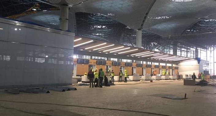 Dünyanın en büyüğü olacak İstanbul Yeni Havalimanı’nda inşaat sürecinde bir ilk daha yaşandı. Terminale biniş bankoları da konulmaya başlandı.