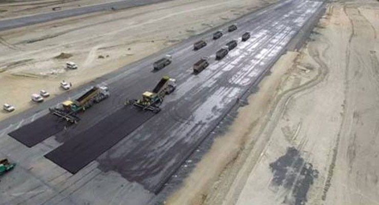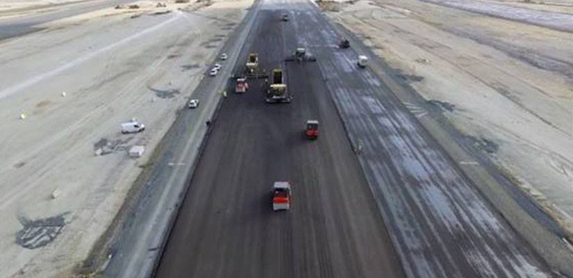 Havadan çekilen görüntülerde inşaat çalışmalarının hızla devam ettiği ve yapımı tamamlanmak üzere olan bir numaralı pistin asfalt döküm çalışmalarının hızla yapıldığı görülüyor.