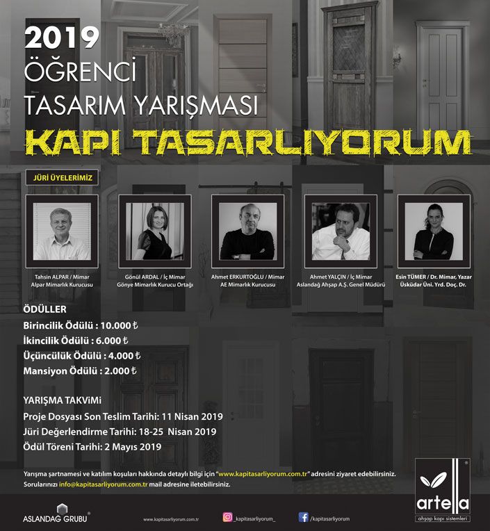 Yarışmaya başvurular ise 11 Nisan Perşembe günü saat 17.00 tarihine kadar kabul ediliyor. Kapı Tasarlıyorum yarışması hakkında detaylı bilgi almak için www.kapitasarliyorum.com.tr internet sitesi incelenebilir, yarışma hakkındaki en güncel bilgilere instagram’da _kapitasarliyorum_ ve facebook’da /kapitasarliyorum hesapları üzerinden ulaşılabilir.