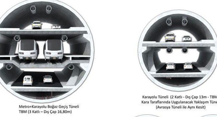 Tek tüpte hem karayolu hem de demiryolu sistemi ile İstanbul Boğazı’nın altından geçecek olan 3 Katlı Büyük İstanbul , bir ayağı, Avrupa Yakası’nda E-5 aksında İncirli’den başlayan ve İstanbul Boğazı’ndan geçerek, Anadolu Yakası’nda Söğütlüçeşme’ye kadar uzanan yüksek kapasiteli ve hızlı metro sisteminden, ikinci ayağı ise Avrupa Yakası’nda TEM Otoyolu aksında Hasdal Kavşağı’ndan başlayan ve İstanbul Boğazı’ndan geçerek, Anadolu Yakası’nda Çamlık Kavşağı’na bağlanan 2×2 şeritli karayolu sisteminden oluşacak.