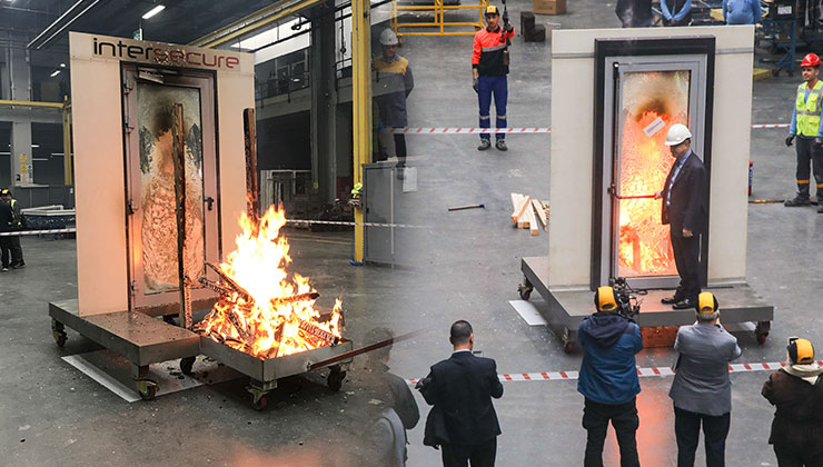 Çuhadaroğlu’nun intersecure sistemleri üzerinde gerçekleştirilen testlerde kapı sistemlerinin 90 dakikaya kadar yangına dayanım sağladığı, bazı tasarımlarda ise 120 dakikaya kadar bütünlüğünü koruyacak şekilde üretim yapılabildiği belirtiliyor.