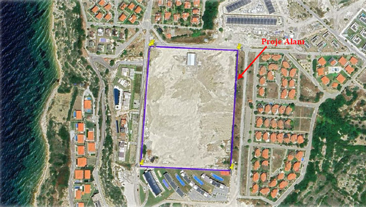 Proje alanı İzmir şehir merkezine yaklaşık 78 kilometre mesafede yer alıyor. Çevresinde Grand Hotel Ontur Çeşme ve Ramada by Wyndham gibi büyük oteller bulunuyor. 1 kilometrelik yarıçapta yazlık siteler ve rezidans tipi yerleşimler dikkat çekiyor.