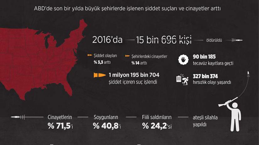 ABD Federal Soruşturma Bürosu’nun (FBI) yayınladığı son rapora göre, ülkede bir yılda 1 milyon 195 bin 704 şiddet içeren suç işlendi.