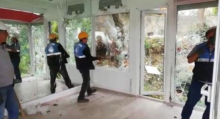 Ekiplerce gerçekleştirilen yıkım işlemi, arazide bulunan ağaçlara zarar verilmemesi doğrultusunda iş makineleri kullanılmadan gerçekleştiriliyor.