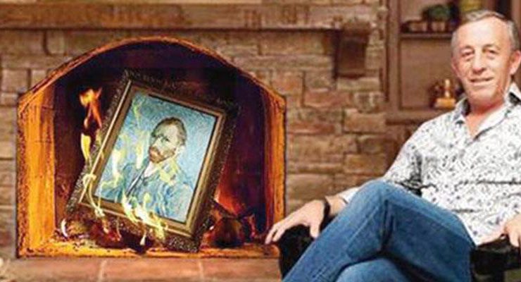 Ali Ağaoğlu şöminesinin önüne oturmuş, Van Gogh’un en ünlü tablosunu keyifle yakıyor…
