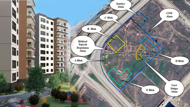 Proje sahası toplam 18.688 m² ÇED alanı ve 17.499 m² parsel alanı üzerinde yer alıyor. Beş bloktan oluşan yapı grubunun toplam oturum alanı 3.769,42 m².