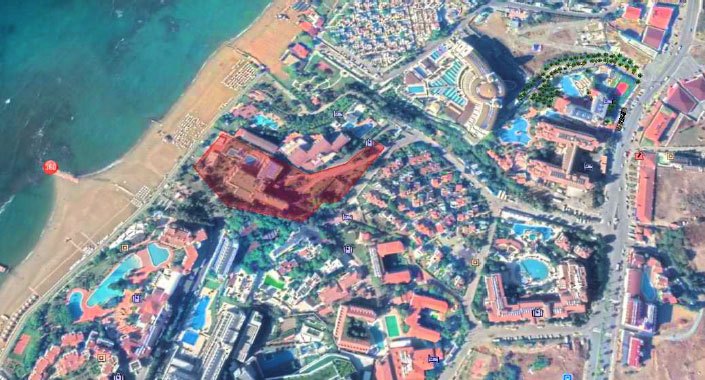 Otel arsası, kuş uçumu Antalya İl Merkezi’nin yaklaşık 60 km doğusunda, Manavgat İlçe Merkezi’nin 9 km batısında yer alıyor. Proje alanının kuzeyinde Kirman Otel, güneydoğusunda Barut Hemera Spa&Resort Otel, kuzeydoğusunda Club Bella Sun Otel ve batısında Club Grand Side Otel bulunuyor.