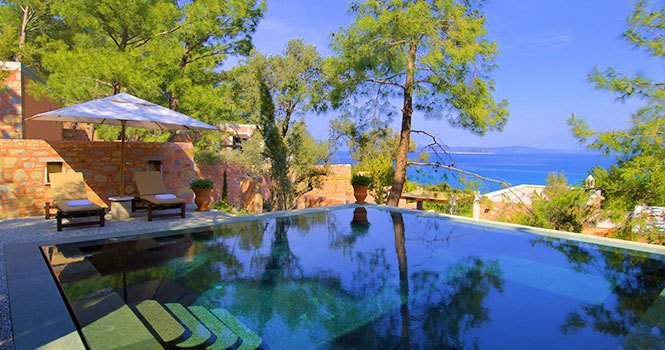 Otelin kendi koyunda yer alan sahili misafirlerine adeta dünyadan kaçış imkânı sunuyor ve ortak alanlar da villalar gibi taş yapılardan oluşuyor. Şarap ve puro salonu, 3 katlı bir kütüphane, yemek villaları ve sanat galerisinin yanı sıra tesisin tam kalbinde Antalya’dan getirilen özel yeşil ve turkuaz mermerden yapılan 50 metrelik sonsuzluk havuzu bulunuyor.