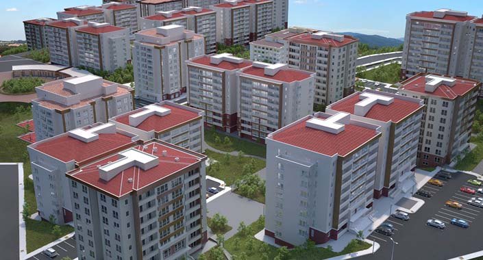 Yükseklikleri zemin+4, 5, 6, 7, 8 olan konutlar 2+1, 3+1 ve 4+1 planında tasarlandı.