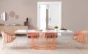 Rose metalin romantik enerjisini davet sofralarında bir yıldıza dönüştüren Antares Yemek Odası, her biri özenle hazırlanmış detaylarıyla ilham veriyor. Alışılmışın dışında kalan tasarımı ile fark yaratan Antares, karakteristik dokusuyla öne çıkan mermeri göz alıcı bir şıklıkla kullanıyor. Rose metal ve mermer gibi iki farklı dokunun güçlü birlikteliği ile hayata geçirilen Antares, iddialı ve bir o kadar da huzurlu bir ortam yaratıyor.