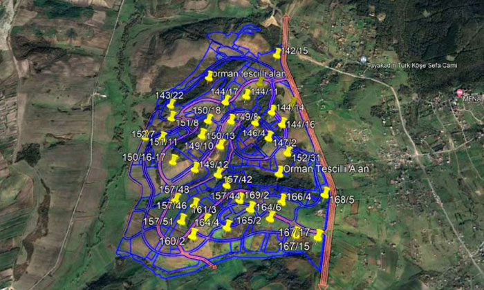 İstanbul Havalimanı’na yakın bir konumda geliştirilecek olan projenin arsası tapuda 142/15, 143/22, 144/11-14-16-17-19, 145/3-5-6, 146/4, 147/2, 149/8-10-12, 150/13-16-17-18, 151/8-11, 152/7, 153/7, 154/7, 157/31-42-44-46-48-51, 160/2, 161/3, 162/2, 164/4-6, 165/2, 166/4, 167/15-17, 168/5, 169/2 ada ve parsellerde kayıtlı bulunuyor. Arsaların toplamı ise 41 parsel.