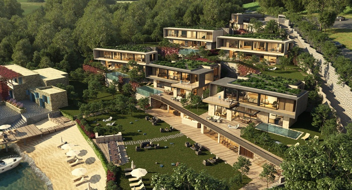 Bodrum’un Akyarlar bölgesinde konumlanan proje her biri iki katlı, altı farklı yapıdan oluşmaktadır. Projenin denize sıfır bir arazide konumlanması nedeniyle manzaraya hakimiyet önemli bir unsur olarak ele alınmıştır. Zemin katta yer alan ve bahçeye açılan teras alanlarında deniz manzarasının kesintisiz olması amacıyla yerleşim planı ve villa kotları ön planda tutulmuştur. Villa zemin katlarında geniş yaşam alanlarının, geniş bahçe bölümleri ile desteklenmesi proje başlangıcındaki en temel beklentilerden biri olarak ortaya çıkmıştır. Her bir villa bahçesinde aynı zamanda kendine özel bir havuz tasarlanmıştır. Sahil boyunca uzanan ve sahilin üst, villaların alt kotunda bulunan açık alan, günlük yaşamın büyük bir bölümünün geçirileceği bir peyzaj ve yaşam alanı olarak tasarlanmıştır.