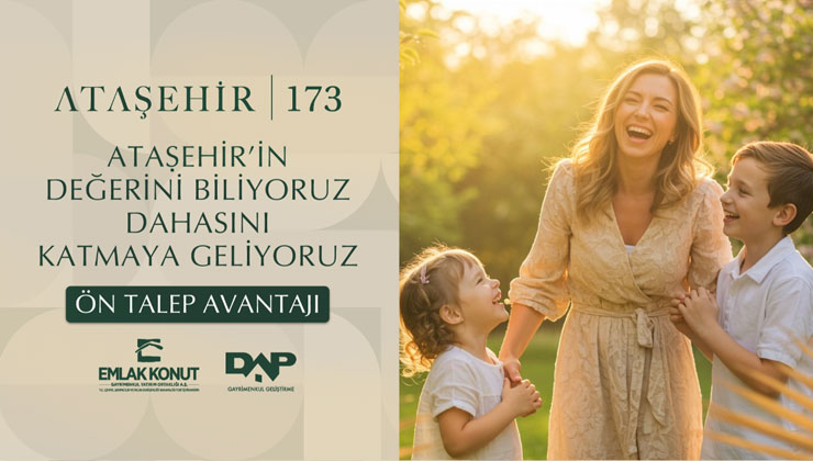 DAP Gayrimenkul Geliştirme A.Ş., Emlak Konut GYO’nun arsası üzerinde geliştirdiği Ataşehir 173 projesinde 36 ay vade farksız taksit kampanyası başlattı. Ataşehir Doğu Bölgesi 3. Etap projesi olarak da bilinen proje, 173 konuttan oluşuyor. Projede topraktan satışlarda hasılat beklentisi 3,5 milyar TL’ye ulaştı.