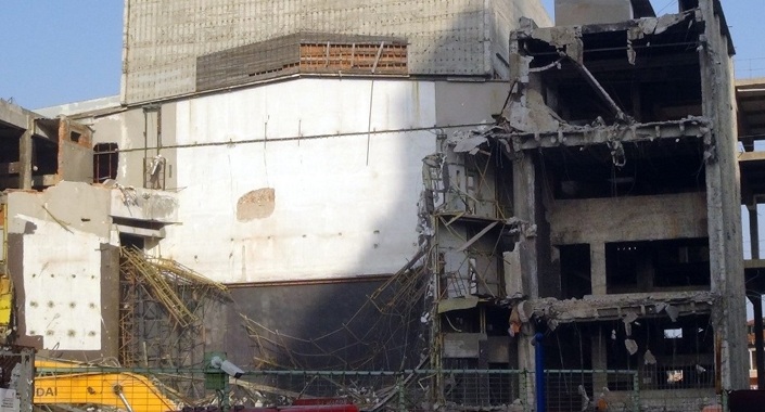 Taksim’de bulunan ve yıkımına 13 Şubat’ta başlanan Atatürk Kültür Merkezi’nde (AKM) yıkım çalışmaları tüm hızıyla sürüyor. Ön cephenin yıkım çalışmaları sırasında AKM içerisinde bulunan beyaz perde göründü. Sabahın erken saatlerinde başlayıp aralıksız olarak devam eden çalışmaları bazı yerli ve yabancı turistlerin ilgi ile izlemesi dikkat çekti.