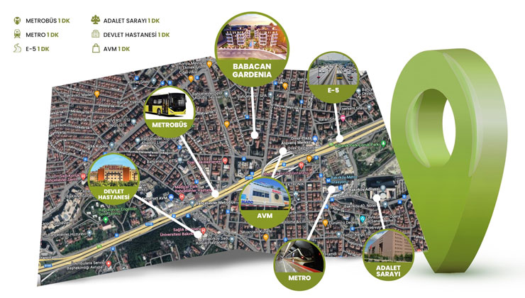 Babacan Gardenia, İncirli bölgesindeki konumuyla metro ve metrobüs hatlarına yakınlığıyla öne çıkıyor. E-5 Karayolu’na ve ana ulaşım akslarına kısa sürede erişim sağlanırken, Bakırköy, Şirinevler ve Ataköy gibi önemli merkezlere ulaşım kolaylığı sunuluyor.