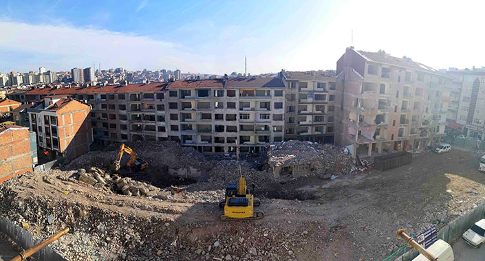 Bağcılar’da binalarda büyük dönüşüm devam ediyor. Bu kapsamda 5.8 büyüklüğündeki depremde ağır hasar alan 5 katlı bina yıkılırken 270 daire ve 40 dükkanın bulunduğu Demircan Sitesi’nde ise yıkım çalışmaları devam ediyor. Boşalan alanlara otoparklı, asansörlü, modern ve depreme dayanıklı konutlar yapılacak.