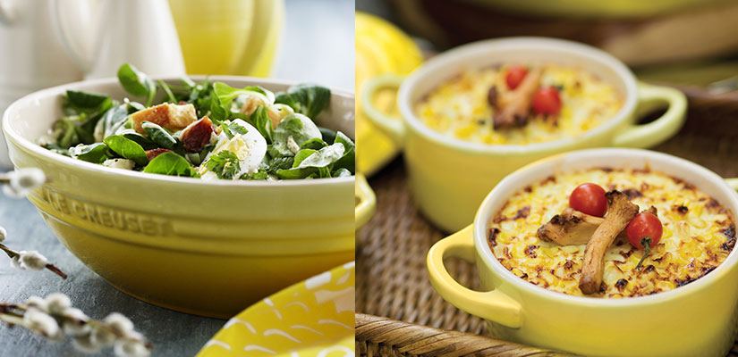 Le Creuset’in Marsilya, Palm ve Güneş renk seçenekleriyle satışa sunulan ikonik döküm tencereleri, mutfaklarda bahar havası estiriyor. Mavinin en özel tonuna sahip Marsilya, ilhamını Akdeniz’in mavi sularından alıyor. Yeşilin Le Creuset yorumu olan Palm doğayı, doğallığı ve yenilenmeyi çağrıştırırken Le Creuset Güneş ise gökkuşağı renklerini yansıtıyor.