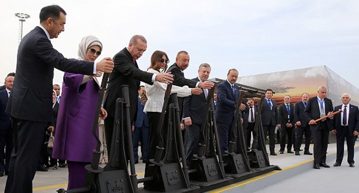 Tarihi İpek Yolu’nu canlandıracak “Bakü-Tiflis-Kars (BTK) Demiryolu Hattı”nın açılışı Cumhurbaşkanı Recep Tayyip Erdoğan, Azerbaycan Cumhurbaşkanı İlham Aliyev, Kazakistan Başbakanı Bakıtcan Sagintayev, Özbekistan Başbakanı Abdulla Aripov ve Gürcistan Başbakanı Giorgi Kvirikaşvili katıldığı törenle yapıldı.