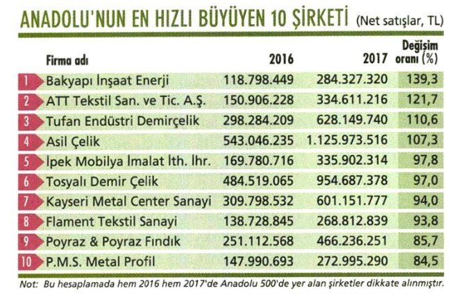Gayrimenkul sektörünün önde gelen şirketleri genellikle İstanbul’dadır. Bursa merkezli Bakyapı İnşaat Enerji ise İstanbul’un da aralarında yer aldığı Çanakkale, Bursa gibi kentlerde üretim yapan bir şirket. Bu başarısıyla Anadolu’nun öne çıkan şirketlerinin birbiriyle yarıştığı Anadolu 500 listesinde ciro artışı bazında en iyi performansı sergileyen şirket oldu. Bakyapı, 2017 yılında cirosunu 2016 yılına göre yüzde 139,3 arttırarak 118,8 milyon TL’den 284,3 milyon TL’ye yükseltti. Böylece Anadolu 500 listesinde de 481’inci sıradan 284’üncü sıraya yükselmeyi başardı.