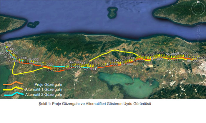 Proje kapsamındaki güzergah 87+449 km uzunluğunda planlandı. Ancak müracaat edildikten sonra, Bursa İl sınırlarında kalan proje güzergahının 55+500 ve 72+000 km’sinde (TEKNOSAB bölgesi) değişiklik yapıldı. Yeni ölçüler için kurum görüşleri alındı. Proje güzergahında topoğrafya ya da alan vasfının uygun olmadığı kısımlarda tünel yada viyadük ile geçilmesine karar verildi.