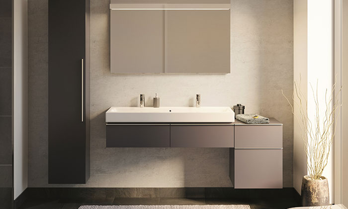 Her biri çift çekmeceli olan lavabo dolabı ise 50, 75, 90 ve 120 cm alternatifleriyle kullanıcıların beğenisine sunulurken aynı yapı yüksekliğine sahip alçak bir dolap seti ile veya daha geniş alçak bir dolap ile L şeklinde bir set ile temin edilebiliyor. Mat beyaz kaplama, mat antrasit, Amerikan ceviz ve meşe olmak üzere geniş renk skalasına sahip ürünler, farklı mobilya seçenekleriyle oluşturduğu uyumla banyolara zamansız güzelliğin esintilerini getiriyor.