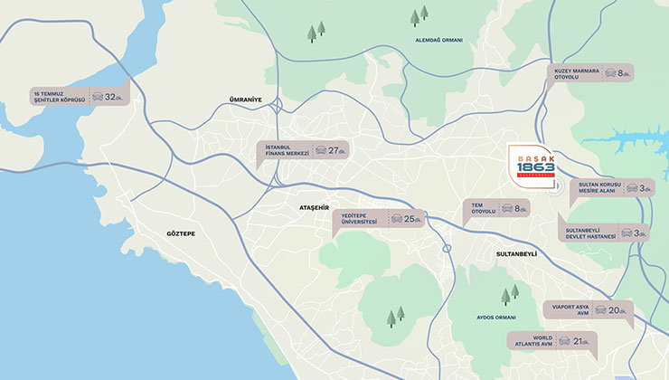 Başak 1863, Aydos Ormanı çevresi ve gelişen konut aksı üzerinde konumlanıyor.