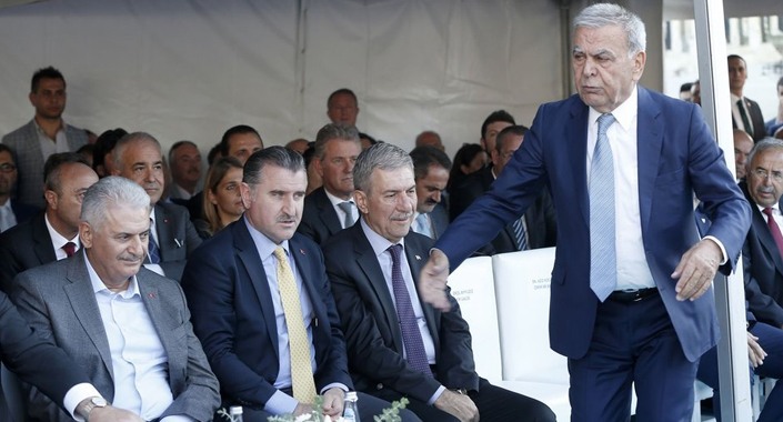 Kürsüye çıkan Başbakan Binali Yıldırım, Başkan Aziz Kocaoğlu’nun atılan sloganlara sitem edip töreni terk etmesiyle ilgili, “Başkan niye sinirlendi anladınız mı? Demek ki Recep Tayyip Erdoğan sevgisine hâlâ tahammül edemeyenler var. Aziz Başkan’ın şekeri var. Birden şekeri çıktı, vitesler attı. Ama öfke onun olsun, sevgi bizim olsun” dedi. Yıldırım, kendisi lehine atılan ‘Yolların kralı Binali Yıldırım’ sloganları üzerine “Yolların kralı olmaz, yolları kuralı olur. İlla bir şey diyecekseniz ‘Yolların mimarı’ deyin” dedi.
