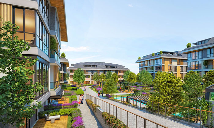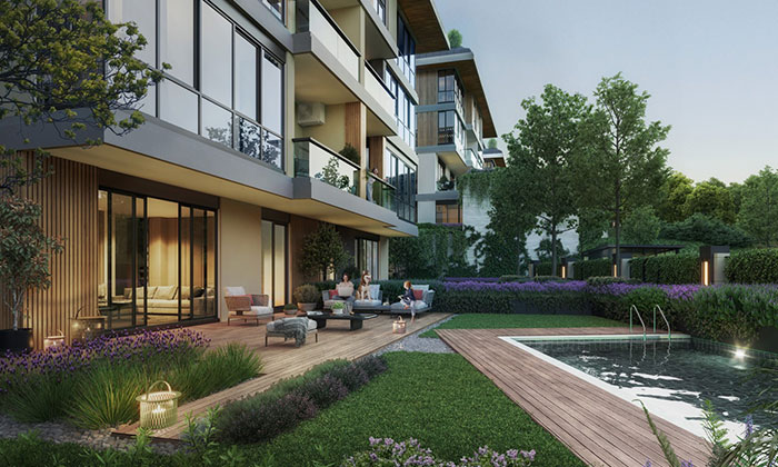 Bahçe katında bulunan özel havuzların yanı sıra meydanlar, yürüyüş yolları ve ticaret alanları ile desteklenen proje şehirde ormanın yanı başında bir yaşam vaat ediyor.