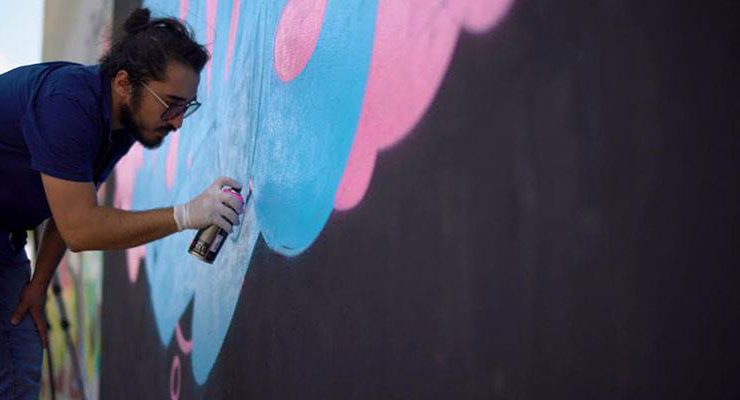 Ressam Ahmet Burak Halıcı ‘Bi Oda Sanat’ adını verdiği atölyesinde ekibi ile sanat çalışmalarını yürütüyor. Sosyal yaşam alanlarına çizdiği resimlerde ilk olarak alanın genişliğine baktığını söyleyen Halıcı “Resim çizeceğim yerin dokusuna dikkat ediyorum. Bu süreci alan içinde gözlem yapmak takip ediyor. Daha sonra çevreye, insanların yaşam standartlarına, tarzlarına bakıyorum” dedi. Uzun yıllardır sokakta olmasının eserlerini etkilediğini belirten Halıcı, sokaktaki her nesnenin, sokağa değer verdiğine inandığını ifade etti. Duvarın lekeli, kirli ve paslı dokusunun resimlerinde kendini daha farklı, renkli bir yere bıraktığını anlatan Halıcı, “Resimlerimde ağırlıklı olarak spray boya kullanıyorum. Tabi ki rulolar kalemler fırçalar olmazsa olmazlarımız” diye konuştu.