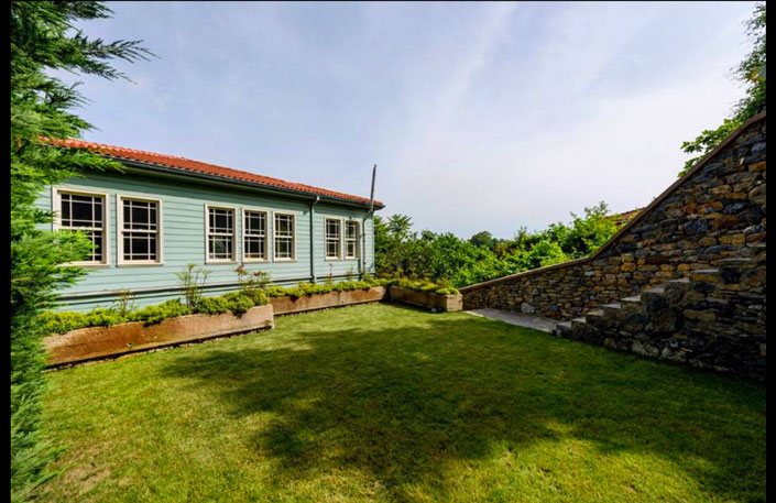 Toplam olarak 500 metrekarelik kapalı kullanım alanı bulunan köşkün bahçesi de 500 metrekare büyüklüğünde.
