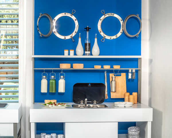 Modüler ve hareketli ürünleriyle balkon, teras, havuz başı gibi açık mekan kullanımına uygun ve taşınabilir model “Bodrum Marine Mutfak”, aileler için alışılmışın dışında keyifli deneyimler yaşatıyor.
