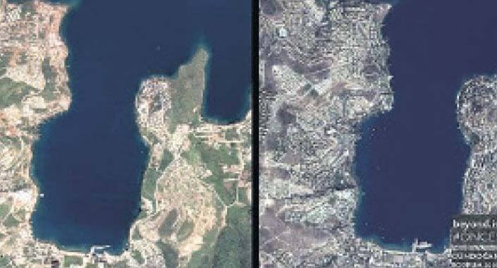 Bodrum, Yalıkavak ve Gündoğan’la ilgili paylaşılan uydu görüntüleri, son 10 yılda çevrenin nasıl değiştiğini gözler önüne serdi. Fotoğraflarda 2006 yılında ağaçlık olan alanların yerini 2017 yılında oteller ve eğlence mekânları aldı.