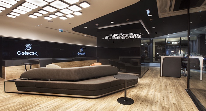 Showroomda, ilk giriş itibariyle ziyaretçiyi karşılayan dijital verilerin anlık yayınlandığı videowall, light box ve cam arkası kamufle edilmiş ekranlar gibi öğeler farklı bir dünyaya giriş hissini olabildiğince yüksek tutmak hedeflenerek uygunlanmış. Merkezde yer alan ikram bankosu müşterinin kullanımına açık olarak düşünülmüş, özel üretim mobilya ve ışık detayları ile genel proje içerisinde tam uyum hedeflenmiş. Aynı zamanda lineer oturma grupları modern görünümlü yapılarıyla müşteriye en konforlu bekleme alanı standartları sunarken aksesuar ve teşhir üniteleri ürün görünürlüğü ve kolay ulaşım hedefleri baz alınarak tasarlanmış.