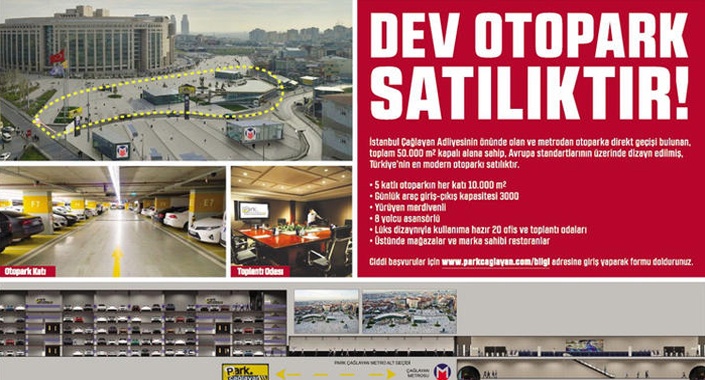 Butik bir AVM ve toplantı odaları ve cafelerin de bünyesinde olduğu otopark için “Türkiye’nin en modern otoparkı satılıktır” denildi.