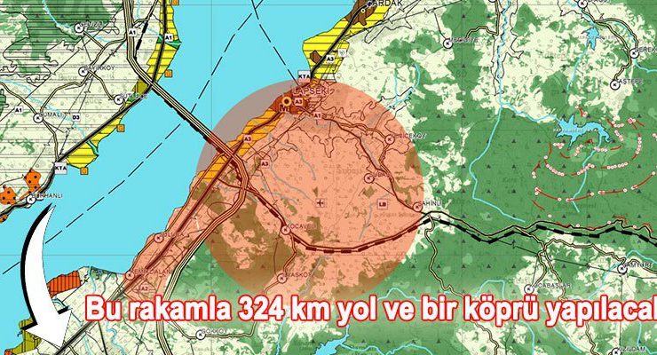 Çanakkale 1915 Köprüsü’nün Çanakale Gelibolu, Lâpseki, Çan, Yenice ve Balıkesir Balyan’dan geçtikten sonra İzmit Otobanı’na bağlanacağı kesim.