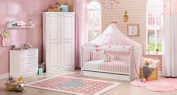 Klasik tarz baskılı tasarımı, beyaz eskitme görünümle taçlandıran Çilek’in Selena Baby serisi, anne adaylarını bebeklerini huzur içinde uyutabilecekleri bir ortamla buluşturuyor.Bebeklerin eşyalarını daha kolay düzenlemeye yardımcı olan Selena Baby, çekmecelerin içerisinde bulunan bölümleriyle de bebeklerin eşyalarını daha kolay saklanmasına olanak veriyor. 3 kapılı dolabında kullanılan porselen kulplarla Selena Baby, ayrıntıya önem veren ailelerin tercihi olurken, dolap kapaklarındaki fren sistemi sayesinde de miniklerin sessiz bir ortamda uyumasını sağlıyor. Uygun fiyatla da göz dolduran Selena Baby ile Çilek, bebeklerin güvenliklerini aileleri kadar düşündüğünü bir kez daha kanıtlıyor ve duvara sabitleme aparatıyla miniklerin oda içinde rahatça dolaşmasına olanak tanıyor.