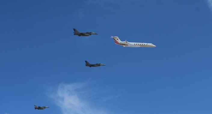 Cumhurbaşkanı Erdoğan’ı taşıyan uçağa, Milli Savunma Bakanı Hulusi Akar da F-16 ile eşlik etti.