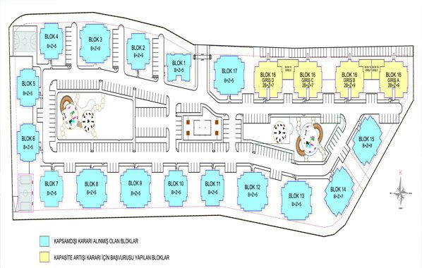 3+1: 6 daire olmak üzere 166 daire ile 3 dükkan ilave edildi.