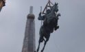 Kazakistan’da yapıldıktan sonra parçalar halinde Bolu’ya getirilen dev Köroğlu heykeli kaidesine yerleştirildi.
