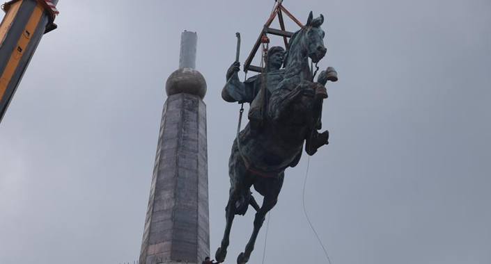 Dev Köroğlu heykeli kaidesine yerleştirildi