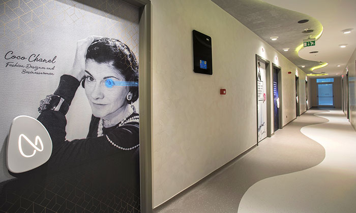 İnsan bedenine atıfta bulunan duvar tasarımları ile koridorlar, uygulama odalarına ve doktor odalarına yönlendirilmiş. Arada ortaya çıkan bir dinlenme ve bekleme alanı ise, Zorlu Center’ın orta alanına doğru açılan bir balkona bağlanmış. Uygulama odalarında özellikle tasarlanmış olan dört farklı aydınlatma tipi, hastanın dört farklı anını baz alıyor: Hastanın odaya girdiği an, uygulamanın yapılma anı, hastanın dinlenme aşaması ve son olarak hastanın yenilenmiş olarak kendisini gördüğü an… Ayrıca, hastaların aydınlık konforu uygulama odalarının en önemli tasarım kriterlerinden biri olmuş.