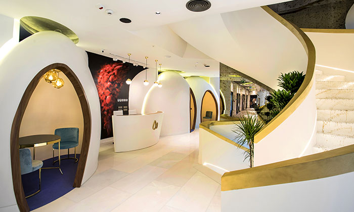 İlk etapta Zorlu Center’da, sonrasında ise Quasar İstanbul’da açılan Doctor B Estetik Hastaneleri’nin tasarımcısı AAD Architects, sadece bir hastane mekanı olmaktan öte insana dokunan, içindeyken farklı hissettiren, davetkar mekanlar yaratıyor. Sağlık mekanlarının tasarımlarında her zaman özgün, sıradışı ve sanat odaklı bir yaklaşımla hareket eden AAD Architects kurucusu Mimar Ayşegül Güner, “sorgulayan, düşünen ve düşündüren mekanlar” olarak tanımladığı Doctor B Estetik Hastaneleri’nde öncelikli hikaye olarak insana duyulan saygı, hayranlık ve merak duygularına odaklanmış.