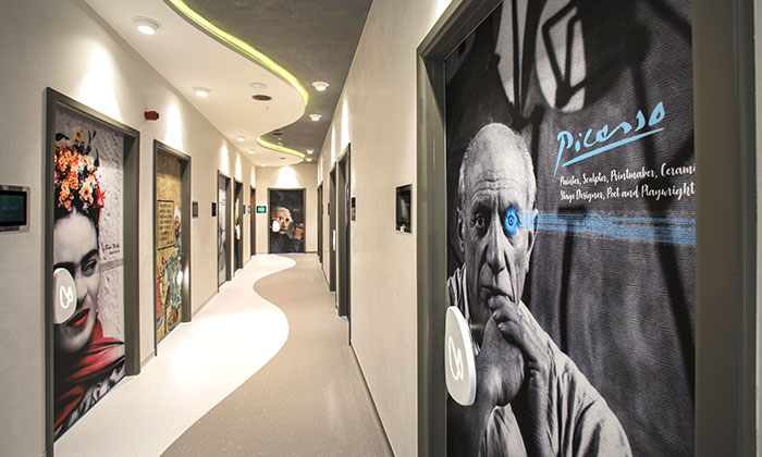 Aesthetic International projesine yeni bir isim verilecek olsa adının “Yeniden Doğuşun Dansı” olabileceğini dile getiren Ayşegül Güner “İnsanlar yeniden doğuşta girdikleri odalardan ve ameliyathanelerden tamamen değişerek, yenilenerek ve kendileri ile bir kere daha tanışarak çıkıyorlar” diyor ve bu sebeple her odanın kapısının tamamen özgün şekilde tasarlandığını ve her kapıda ayrı bir bilim ve sanat insanının yansıtıldığını sözlerine ekliyor. Böylece ana rahmindeki kanallarda insanlar bilim ve sanat ile buluşturulmuş; şaşırmaları, düşünmeleri ve öğrenmeleri sağlanmış. Bu yaklaşım sayesinde adeta bir galeriye dönüştürülen hastanenin ameliyathanelerinde de ressamlarla özel çalışmalar gerçekleştirilmiş. Bir sağlık mekanında ilk kez uygulanan bu yoğun sanatsal yaklaşım Sağlık Bakanlığı denetim ekiplerinde de büyük bir şaşkınlık yaratmış. Ameliyathane duvarlarındaki insana dair estetik figürler alışılmışın dışında bir deneyim sunmuş.