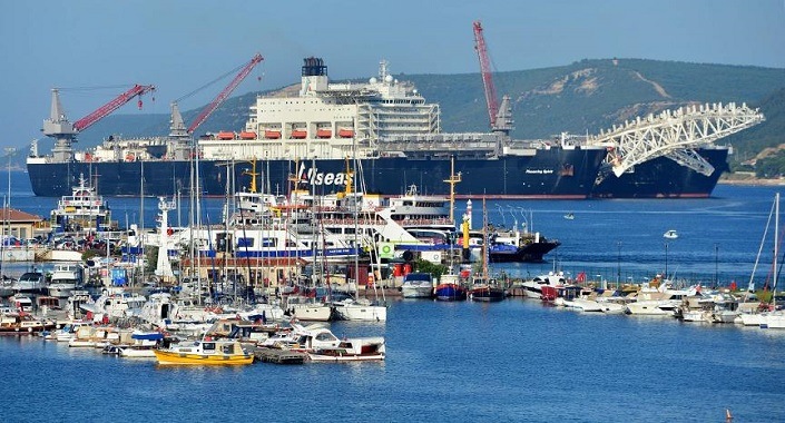 TürkAkım Doğalgaz Boru Hattı’nın derin sulardaki kısmını döşeme görevini üstlenen, dünyanın en büyük inşaat gemisi Pioneering Spirit, Çanakkale Boğazı’ndan geçiş yaptı.