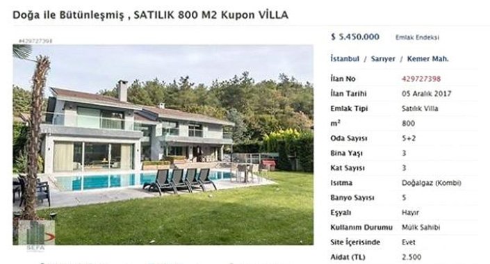 Birden fazla oturma odası, yatak odası ve ondan fazla banyosu olan malikanenin içerisinde modern tasarımlarla geleneksel detayların birleşimi dikkat çekiyor.