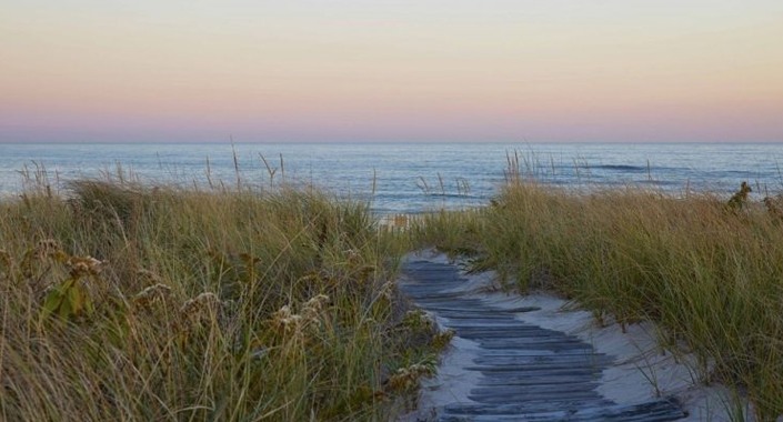 Okyanus sahiline inmek için oluşturulan özel patikalar, merdivenlerle kumsala bağlanıyor.